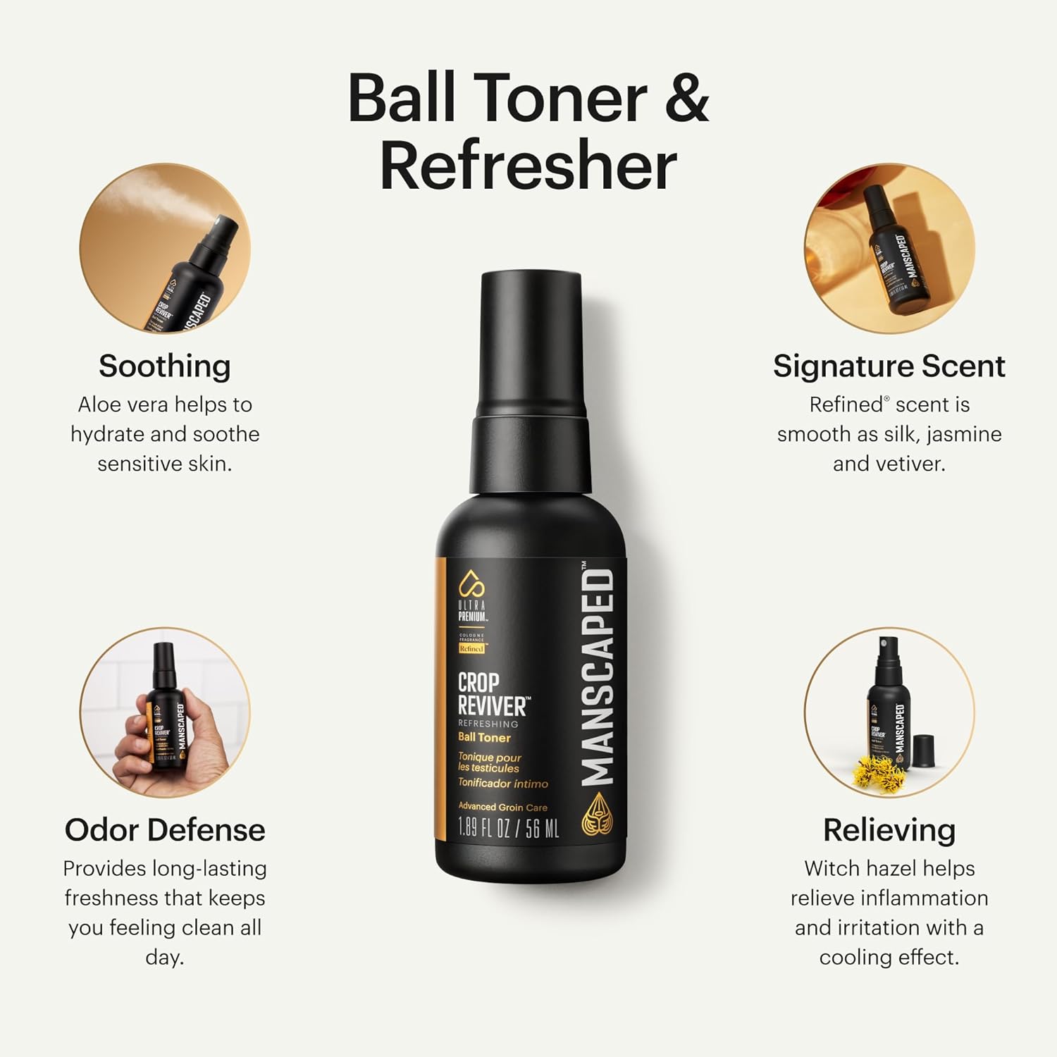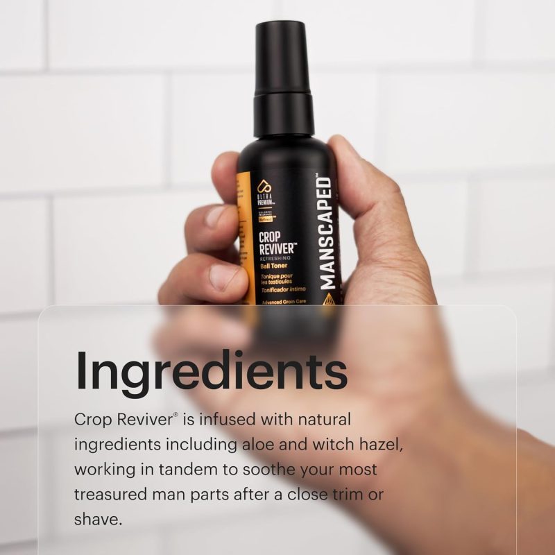 - FORMULATED TO PERFORM: The Crop Reviver is infused with natural ingredients including aloe and witch hazel. working in tandem to soothe your most treasured man parts after a close trim or shave. Use this performance spray as needed throughout the day.