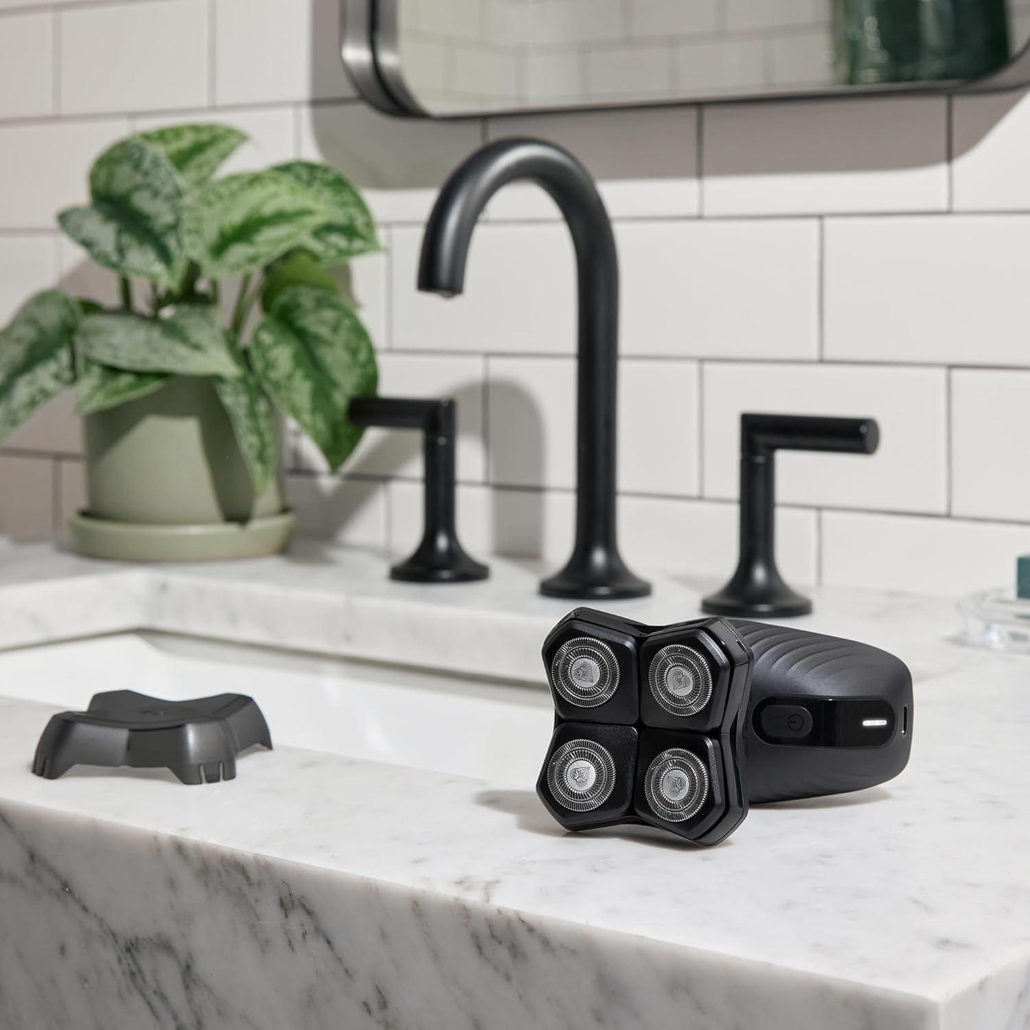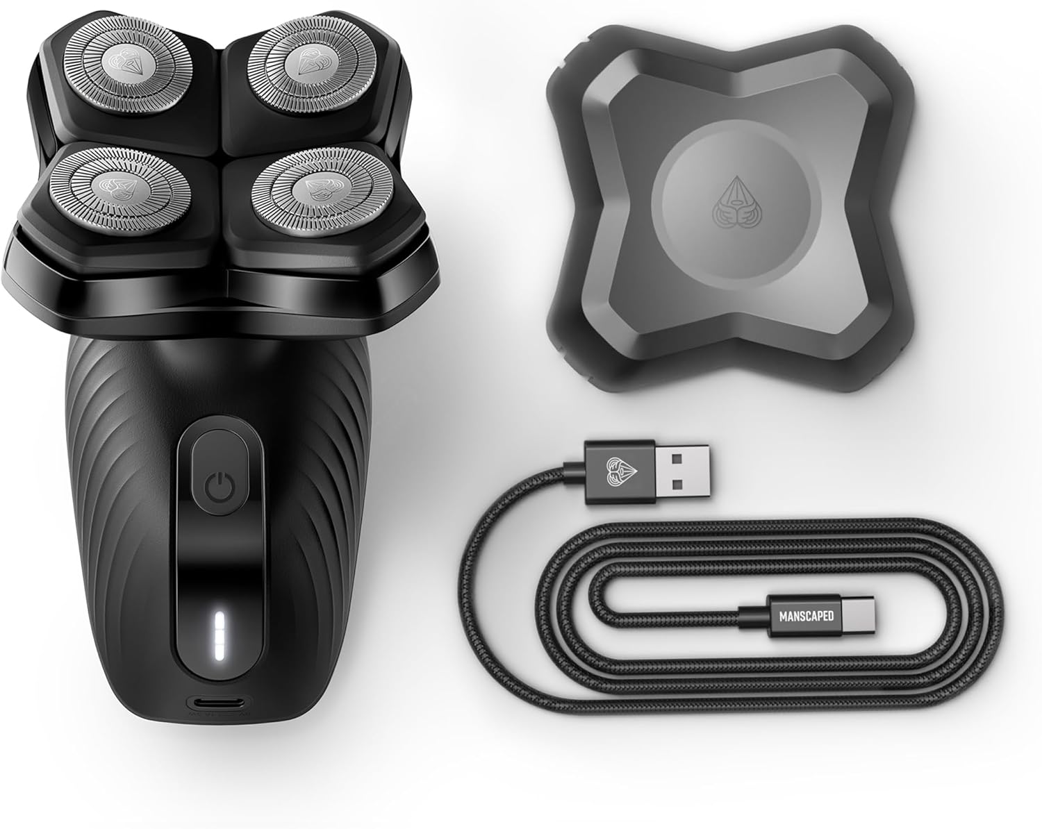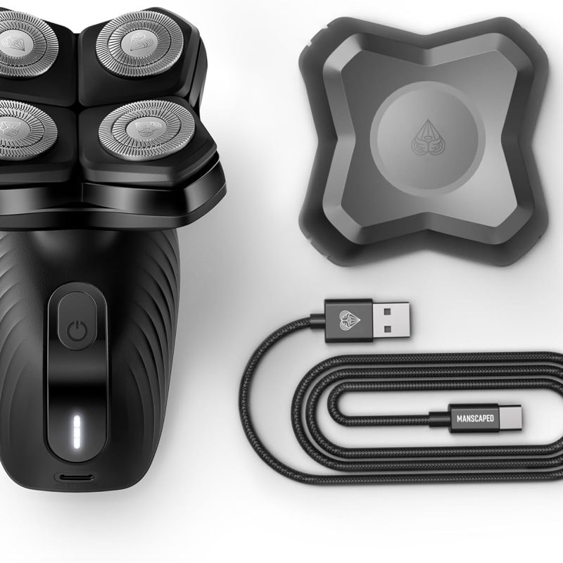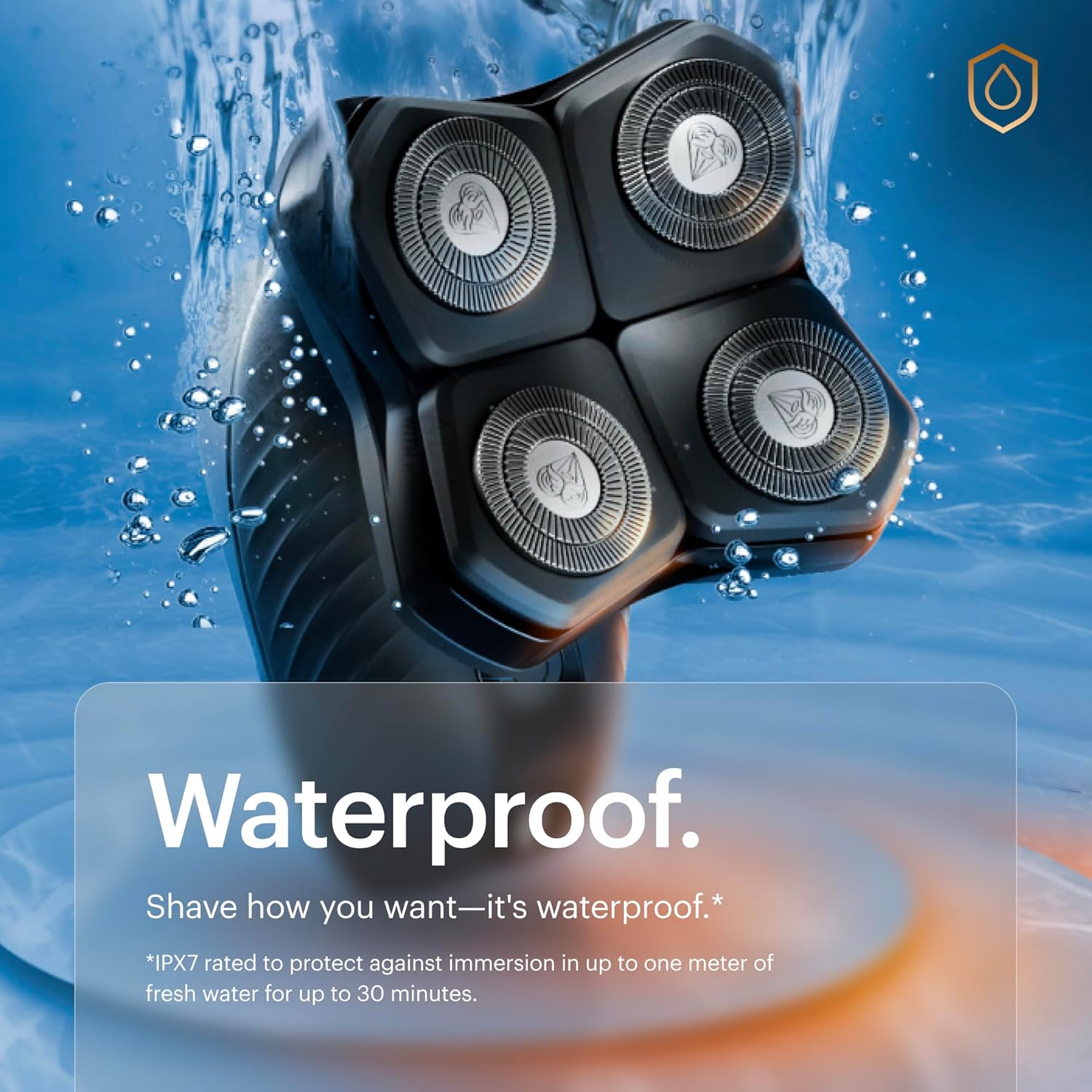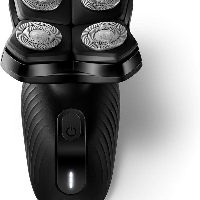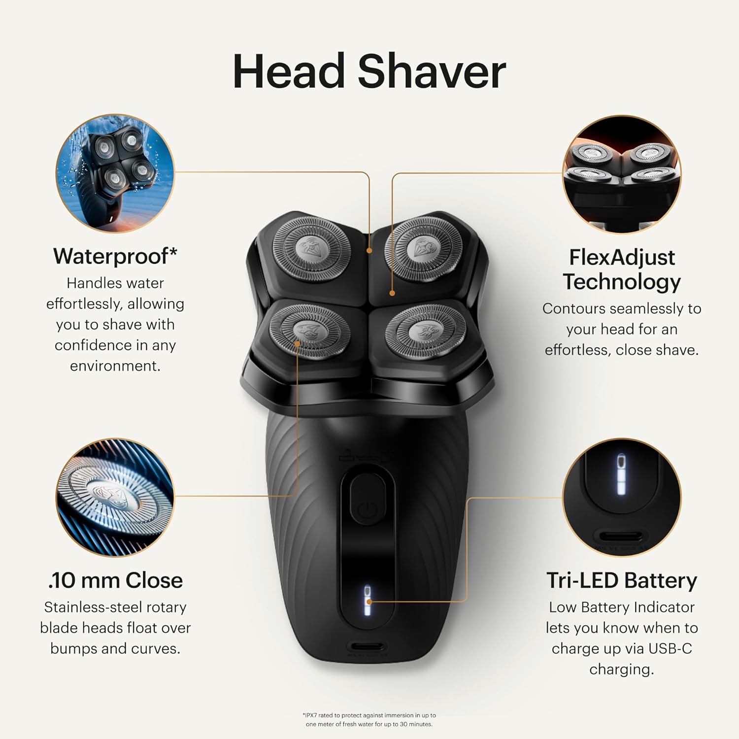 - COMFORTABLE GLIDE: Four stainless-steel SkinSafe rotary blade heads float over bumps and curves providing a .10 mm smooth shave. With FlexAdjust technology. each blade stays in close contact with the scalp. *SkinSafe Technology does not guarantee cut protection.