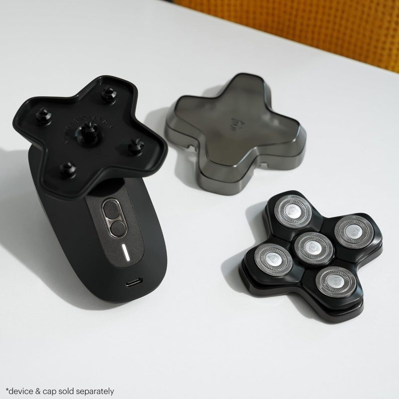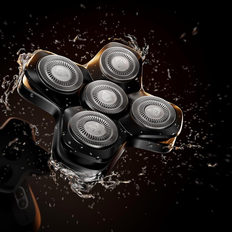 - COMFORTABLE GLIDE: Five stainless-steel SkinSafe rotary blade heads float over bumps and curves providing a smooth shave. With FlexAdjust technology. each blade stays in close contact with the scalp. *SkinSafe Technology does not guarantee cut protection.
