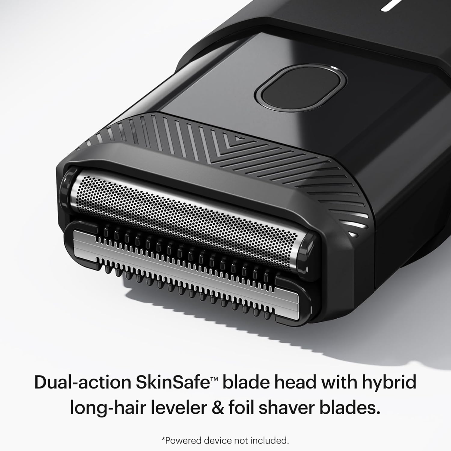 - THE HANDYMAN FOIL BLADE: Our dual-action SkinSafe long-hair leveler and foil shaver blades get to the long and short of it. comfortably adjusting to the contours of your face to shave a three-day stubble down to the skin. *SkinSafe technology does not guarantee cut protection.