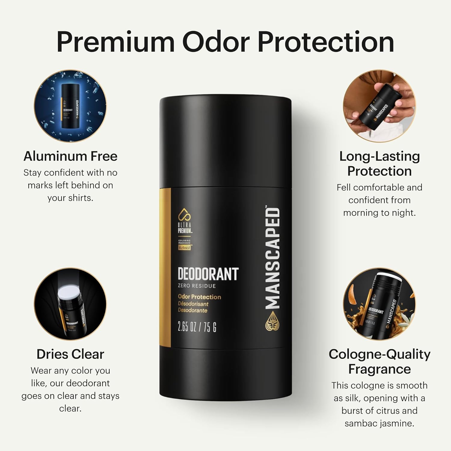 - ULTRA PREMIUM DEODORANT: Our Deodorant has an aluminum-free. clear formula so no marks (or odors) are left in your clothes. it goes on clear and dries clear.